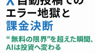 GASによるX自動投稿で直面したエラー地獄。無料環境の限界を痛感し、課金を決断した瞬間を記録。AIを“投資”と捉え始めた転換点をまとめます。