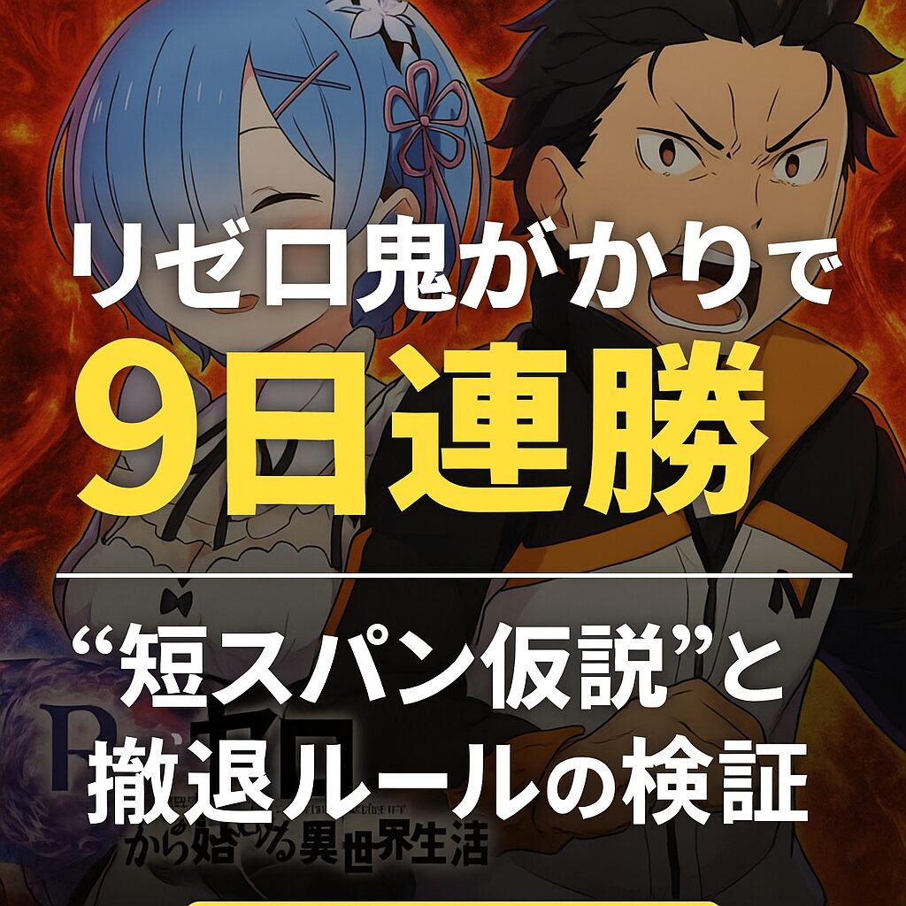 本記事では「リゼロ 短スパン立ち回り」をテーマに、9日連勝+100万円を実現した具体的手順と再現性を紹介します。