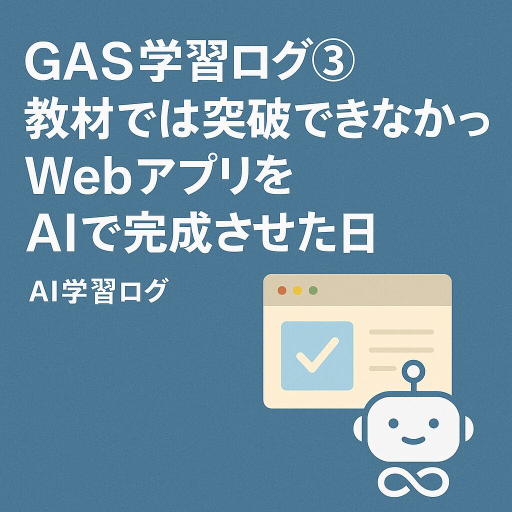 本記事では「GAS Webアプリ AI活用」をテーマに、教材では進めなかった部分をAIで突破した実体験を共有します。